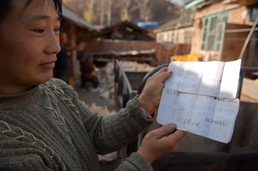 聂喜峰最终承认,的确存在工程分包的问题。他还表示,当时现场监控发现存在问题,公司让他们清理,并下发了文件。然而记者调查发现,项目部在2010年7月后并未进行彻查,这样的行为也并未停止。图为一位施工人员在向记者展示被拖欠的工资债条(10月21日摄)。