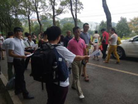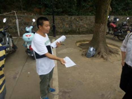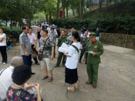 这时纪念主席的活动已达高锋,进入参与的人很多,我们很快就发了1500多份宣传单。特别是河南来的三位老同志,不顾年老体衰,也随大家一起站在炎炎午日下发传单,让人肃然起敬。中午河南小赵也赶过来参加宣传,到下午候大哥、李大姐、小吴继续战斗,带到韶山的2000份宣传材料全部发完。最该表扬的是主席故居警卫员,有个别人把宣传单放在地上,他原本叫小吴去捡,后了解到我们志愿者为挽救民族危亡,到法院起诉渎职卖国的农业部。于是对我们表示敬意,主动帮我们去捡掉在地上的宣传单。我们感觉主席故居的人就是不一样!