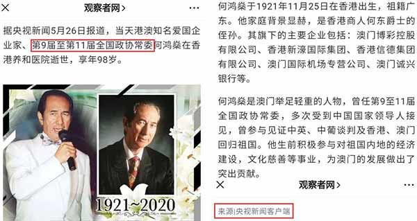 “赌王”何鸿燊走了,某客户端给出了相当高的评价: