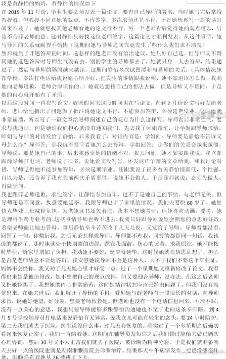 因此,即使是自杀这种付出自我毁灭代价的形式,也没为陶某所在的这个群体争得一丝自由。翻看网页,研究生不堪重负自杀的新闻比比皆是,就在不久前的2020年5月1日,中传大学的黄姓研究生,因为无法找到反抗薛姓导师,使自己顺利毕业的方法,选择结束自己的生命。