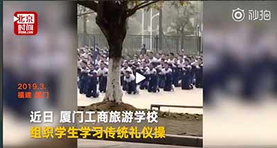 至今我也我法忘记,我在2019年3月时,看到厦门某所学校,打着传承“传统礼仪”的幌子,要求学生在操场上下跪视频时,当时的愤恨心情。 那时记得我问过几个学生,她们有因为极端反感,愤而转校的,有无可奈何,被迫接受的,就是没有一个认为能够改变学校这种罪恶制度的,因为所有人都觉得“斗不过学校”。