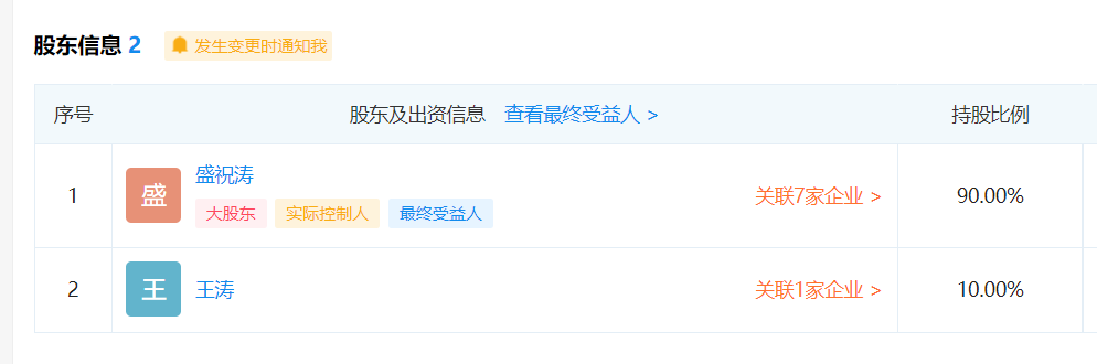 根据查验可知,“徽州宴”就俩股东,其中一个叫盛祝涛的占股90%,而他正是那个邹某的老公!
