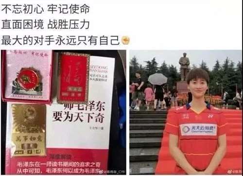 今天中国的年轻运动员敬爱毛主席的不在少数,比如前几天羽毛球女单决赛中击败台北选手夺冠的陈雨菲,不但与主席像合影,还常读有关主席的书,你觉得有什么问题吗?