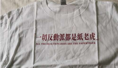 说实话,我也喜欢出门的时候佩戴毛主席像章,我什至还喜欢传毛主席语录的文化衫,我有一件T恤,上面印着”一切反动派都是纸老虎“,走在大街上,行人无不注目。
