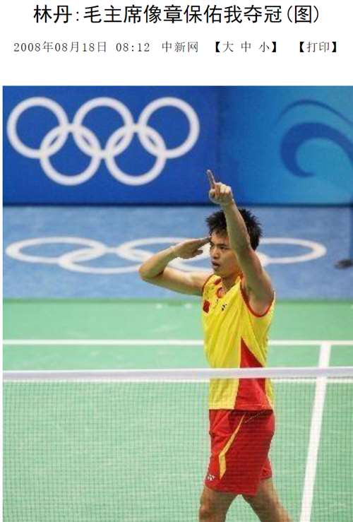 林丹2008年北京奥运会上佩戴毛主席像章一路夺冠,并在说孔令辉当年就是这么做的,他也是受其启发。