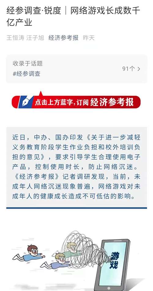 《经济参考报》的原标题《网游对未成年人影响触目惊心 “精神鸦片”竟长成数千亿产业》实际上涉及到两个层面的命题: