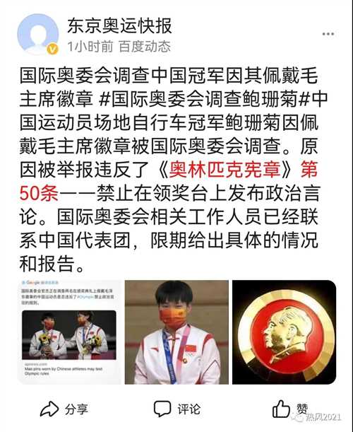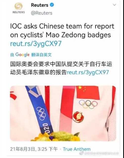 中国人,生长在毛主席建立的新中国红旗之下的中国运动员们,出于个人情感的表达,戴上毛主席像章怎么就让你们如此恐慌了?