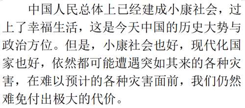 今天也是这样。即便我们已经初步实现了现代化,有了许多现代化观测手段与生产能力,但依然需要救灾救荒,同样要把物质技术储备摆在突出的位置,既要做好应对大自然灾害的物质储备,还要做好应对人类社会人为灾难的物质储备。在这个问题上,我们不能指望市场,更不能指望私有制度,屡屡发生的事实证明,这些东西不但没用,相反越是到关键时刻越暴露其丑陋的本相。救灾救荒,只能建立在全国一盘棋的基础上,这是一条重要的历史经验。