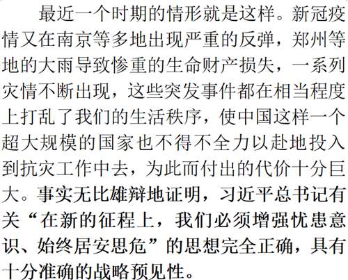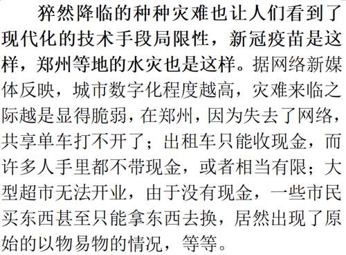 在新冠疫情以及河南大水等若干场灾难面前,我们既看到了集体主义精神的伟力,也看到个别无政府自由主义行为的祸害,最为出名的就是南京的“毛老太”。据报道,这个“毛老太”无视相关规定,逃避必要的监管而跑到扬州去打麻将,结果将可怕的病毒带到了扬州,致使扬州很多感染,陷入不得不封城的危机状态。有抱不平心怀正义者还根据这个事件写成了《史记·毛老太野传》一文以加以鞭笞,在网络媒体上广为流传。这个事实说明,在任何灾难面前,万众一心、众志成城十分关键。