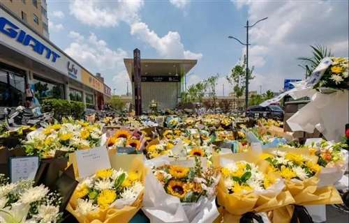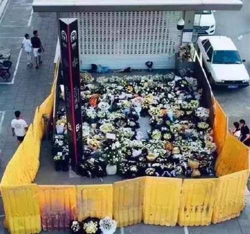 头七这一天,很多人在出事的沙路口站地铁口摆上鲜花,寄托哀思。