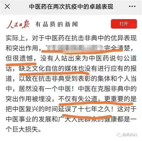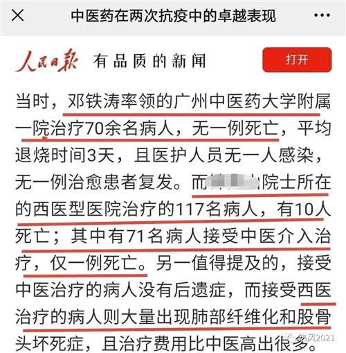 昨天凌晨02:07,“人民日报”客户端四川频道,罕见发表了一篇题为《中医药在两次抗疫中的卓越表现》的文章。