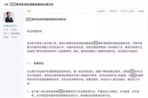 8月9日凌晨,阿里巴巴董事会主席兼CEO张勇在阿里内网公布了“女员工被侵犯”的阶段性内部调查结果和处理决定。
