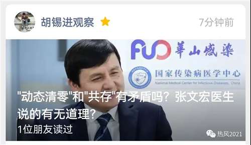 只不过,第二天,鉴于网民群众质疑批判张网红和公知、捍卫正确抗疫路线的声音不但没有减弱反而增强,老胡又一次禁不住有“唇亡齿寒”之感,就像之前替蒋方舟和亲日派公知辩护一样:不装了,把话说明白。