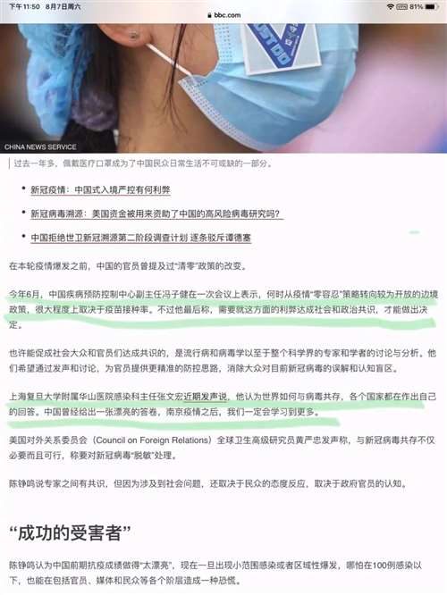 彭博社今天发文称,“世上越来越多国家已认知到可能要与新冠病毒长期共处的事实,并就此展开学习,中国若仍专注于长期消除、清零的目标,反而会使这个全球第2大经济体,在未来几年沦为与世隔绝的孤岛”,“从严格控管疫情,转变成说服人民接受确诊及死亡病例为日常的一部分”。