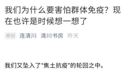 南方系的某媒体人也出来发话,考虑下群体免疫嘛,别再搞“焦土抗疫”了。