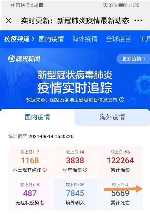 专家们鼓吹的防感染未能实现,却成功的把我们的防范心理卸掉了,在接种疫苗人群不断被感染之后,专家们又改口,成了不防感染,防重症,然后,又变成防死亡,但是根据疫情实时追踪数据显示,截止14日下午16点,死亡人数新增4人。