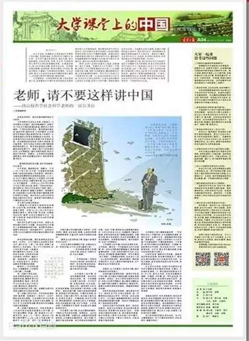 2014年,辽宁日报头版刊载了一篇《老师,请不要这样讲中国》的文章,文中披露了大量的大学老师在课堂上抹黑中国、侮辱中国的言论。文章出来后,却遭到公知大V的攻击。此后,砖家叫兽们仍然我行我素的进行反爱国的“学术研究”。去年通过方方钓出来一大串王八,都证明了辽宁日报披露的真实可信。