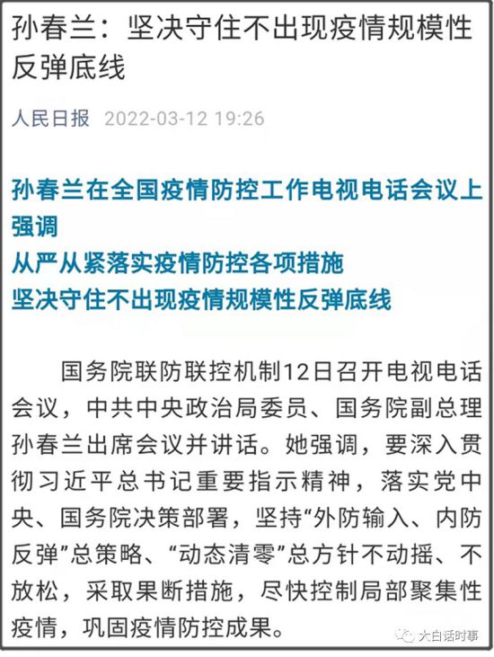 在3月12日,我们已经再次强调了“坚决守住不出现疫情规模性反弹底线”,强调“坚持“外防输入、内防反弹”总策略、“动态清零”总方针不动摇、不放松”