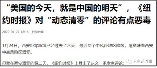 大家不知道还记不记得在1月底,我们西安刚完成清零的时候,纽约时报发了一篇很恶毒的报道。