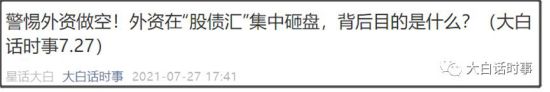 在2021年7月27日,我也单独写了一篇文章,标题就直接写着“警惕外资做空”。