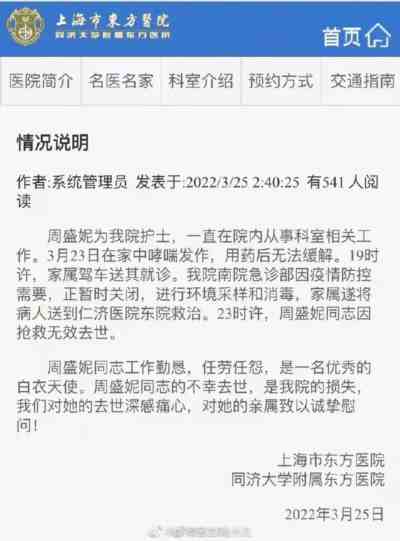 今天一早,看到一条“上海东方医院护士突发哮喘因疫情管控,救治无效死亡”的消息。说实话,在没有看到官媒报道和官方回应的时候,我还有点不敢确信这是不是真的,毕竟,是上海啊。没多久,看到了媒体的报道,看到了医院的回应,我才真的相信了。