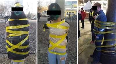 乌克兰新纳粹强迫路人入伍、抓壮丁,用铁索把新兵锁在路灯上,强迫他们与俄军战斗。