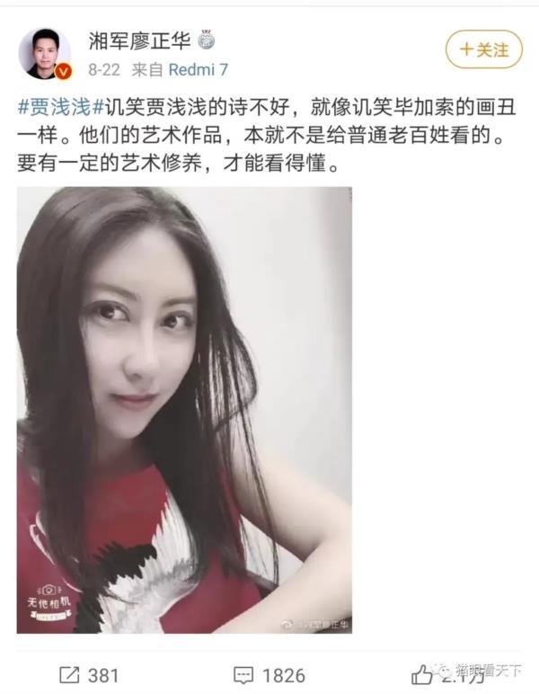 某诗人更是露骨:对贾浅浅的批判,其实是一种再常见不过的‘管中窥豹、以偏概全的魔法。
