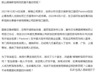 就算他不是辉瑞公司的高管,而是美国百时美施贵宝(中国)高管,陈先生作美国的十大药企之一,同行业的主管,他不会不知道辉瑞的药到底是不是治疗新冠的“特效药”。在这一点上他应该比我们所有人都清楚。