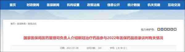 国家医保局网站8日消息,2022年国家医保药品目录谈判工作于1月8日正式结束。国家医疗保障局医药管理司负责人介绍了新冠治疗药品参与医保药品目录谈判有关情况。