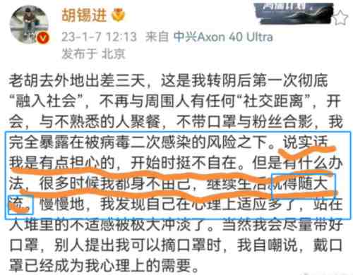 胡锡进先生是个诚实的人,他说他现在“完全暴露在被病毒二次感染的风险之下”,“多少有点担心,开始时挺不自在,但是有什么办法,很多时候我都身不由己,继续生活就得随大流”。这侧面说明了胡锡进先生是压根就不信有“特效药”的鬼话的,要是真有“特效药”,别人或许买不起、买不到,胡锡进先生大概率还是能轻轻松松搞到的,如果连胡锡进先生都“惴惴不安”,那只能说明真的没有“特效药”。