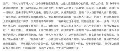 现在再回过头来看专家说的,华人在租借地位不高,但不至于有(“华人与狗不得入内”)这种明目张胆的歧视……