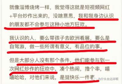 看看这个评论,昭然若揭,即强政府管控他们就觉得忧虑了,还有网上的网红公知死命的唱衰淄博,文章中透露出一股子’跪族“气息,瞧不起去淄博游玩的人,人家去淄博游玩就是没有品味,去欧洲看展就是就显得高人一头有品位,可悲的是,就这样瞧不起平民百姓自大到令人恶心的公知范的网红,还有众多的粉丝,转过头这种人又装作关心民间疾苦的叉样,骗得无数脑残粉。