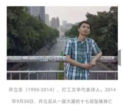 但是,这种人人向往的美好理想,至今仍然似乎是一个遥不可及的梦。这让我想到打工诗人许立志,这位年轻的诗人根据自己切身体验,用他敏感细腻的笔触,刻画了忑瑟时代,劳动对于普通劳动者来说到底意味着什么。