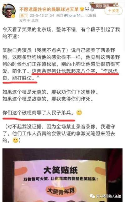 著名的现象级脱口秀企业“笑果文化”旗下的演员“HOUSE(李昊石)”,在北京演出中,讲了个“笑话”,说自己领养了两条野狗,它们在追松鼠时,让他想起来八个字——“作风优良,能打胜仗”。