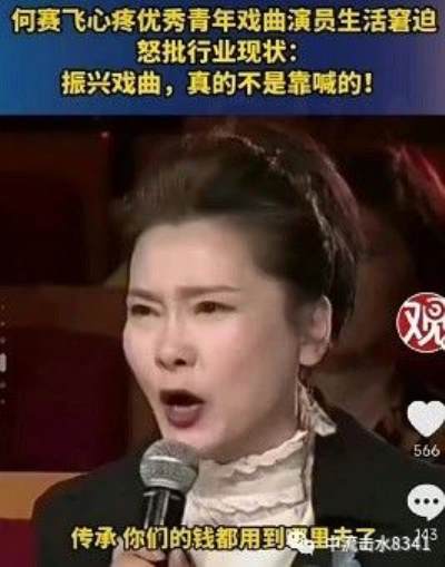 最近,一则短视频引起了广泛讨论。既有官方发声也有民众参与讨论。视频是著名越剧表演艺术家何赛飞老师怒批了中国戏曲行业现状。一句,谈复兴,你们是如何落实党中央政策的,钱都弄到哪里去了?瞬间点燃了民众的情绪。道出了多少年多少人看明白但是没如此彻底说出来的话。