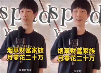 家里做烟草的18岁小伙,一身限量发售的国际奢侈品牌,家里七八套房,自己每个月零花钱就有20万(刷他爹的卡)……