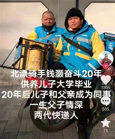 农民工的孩子念完大学去当农民工,这样的现象也会普遍起来。近日,网络上热传一则视频,北漂骑手钱灏奋斗20年,供养儿子钱坤大学毕业,但工作难找,最后父子二人成了同事,一起做骑手送外卖。