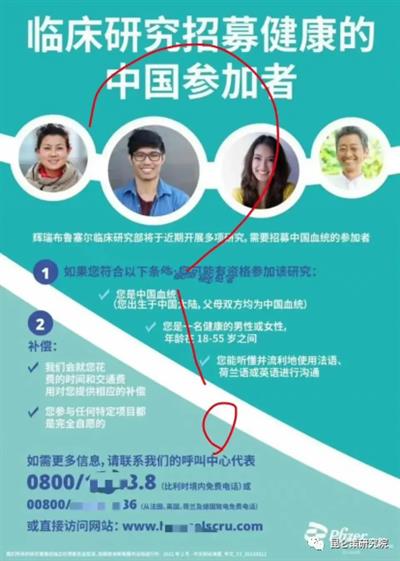 美国辉瑞公司位于比利时布鲁塞尔的分支研究单位,在facebook上针对华人大规模推送一则临床药物试验的广告,就是有偿寻找纯种华人去当辉瑞的实验对象,直系血亲必须都是华人。