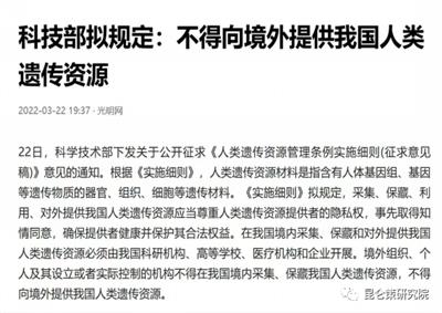 2022年,中国科学技术部就下发《人类遗传资源管理条例实施细则》,规定不得向境外提供我国人类遗传资源。以防止敌对分子靶向研发针对中国人基因的基因武器。