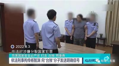 2022年8月3日,浙江省温州市国家安全局依法对长期从事“台毒”分裂活动,涉嫌危害国家安全的犯罪嫌疑人杨智渊刑事拘传审查。