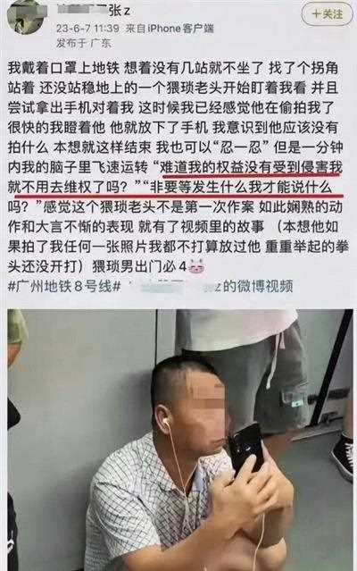 第三,地铁上和解后,继续污蔑丑化农民工。农民工的手机经张薇检查后,这一事件就应该结束。但张薇在明知对方并没有任何侵权行为后,则继续在网络上发布农民工的照片和对农民工的攻击污蔑。一是语言恶毒,指责农民工是一个“猥琐老头”。二是继续她的他的主观唯心主义的思维方法,如他自己所说,“感觉这个猥琐老头不止一次做案”“如此娴熟地的动作和大言不惭的表现”。三是极端蔑视和瞧不起处在社会最底层的老农民工。且文末还诅咒这个农民工“猥琐男必4”。连最起码的尊敬老人,尊敬劳动者的做人的道德观念都不具备。这是张薇这次事件中的最大的错误。一个堂堂的大学新闻专业的研究生口口声声喊要“维权”,难道他自己的所做作为不就是最大的对他人的法律意义上的“侵权”行为吗?她不仅私自拍照农民工,把照片发到网上,而且竭尽污蔑造谣,把脏水泼到到农民工身上。这也是引发网友的极大愤怒和事件扩大影响的最主要原因。