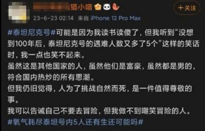你看英国的亿万富翁死在深海里,他的儿子看演唱会的看演唱会,玩嫩模的玩嫩模,人家自家的亲人都很开心,你伤心个什么?同情个什么?