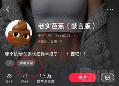 这个XXN还在小红薯账号主页上怒骂举报它的网民。这时,其主页显示出“西南大学”四个字。