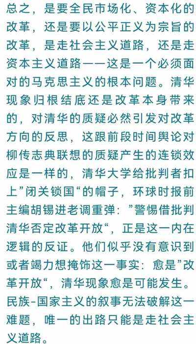 笔者还是衷心希望清华大学能在新时代越来越好,为“立足中国大地 办好中国特色社会主义大学”做出表率。因为清华大学有着又红又专的传统,在抵抗侵略、救亡图存的一二九运动中,清华大学也是主力之一。正是在那一场运动中,先进的知识青年,走上与工农群众相结合的道路,为抗日战争和中国革命事业准备了一批骨干力量。