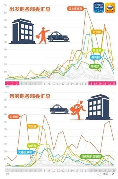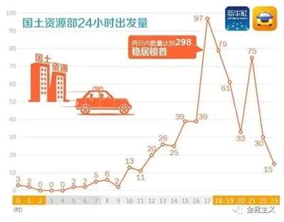 滴滴发现2015年7月中旬除了17时到18时的下班高峰外,18时到凌晨2时,从国土资源部出发的数量形成“夜高峰”,两日内数量达到298,稳居榜首。