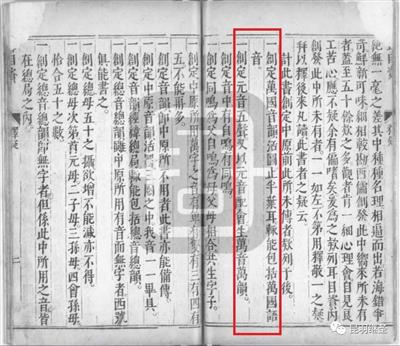 “一创定万国音韵活图,止半页耳,辄能包括万国语音。一创定元音五声,又以元音配会,生万音万韵。”说明万国语音、万国音韵,也就是西文,皆由汉字遵循华夏音韵学衍生而来。