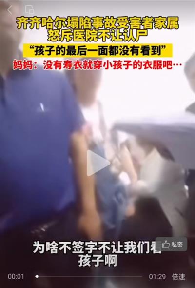 一份视频显示,一群遇难者家属聚集在医院想看最后一面,认一认孩子,希望给孩子穿件寿衣时,居然被拒绝了。