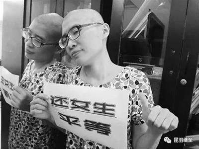 吕频曾经剃了光头,以此作为噱头,手持“还女生平等”的纸张,吸引人们注意。