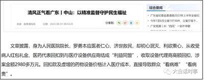 广东省纪委在8月1日也发布文章,披露了中山市坦洲人民医院原党总支书记、院长罗勇受贿一案的部分案情。