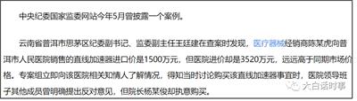 比如,中纪委在今年5月就披露过一个案例,某医院花3520万元买入的直线加速器,实际进口价只有1500万元。